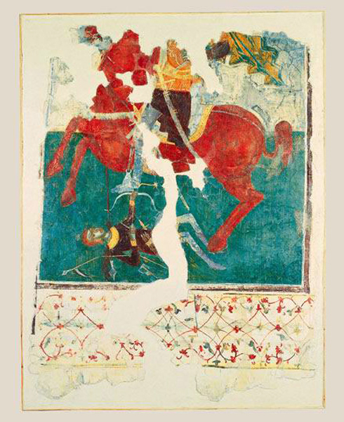 Ο άγιος Δημήτριος έφιππος. Άγιος Νικόλαος, Κόκκινο Θήβας. 16ος αι. Διαστάσεις: 187,5Χ144,5 εκ. ΒΧΜ 1745 - St Demetrios mounted. Church of St Nicholas, Kokkino, Thebes. 16th c. Dimensions: 187.5X144.5 cm. BXM 1745