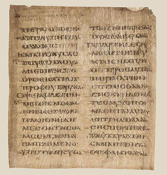 Φύλλο πορφυρού τετραευάγγελου από περγαμηνή που περιέχει το κατά Ματθαίον 14. 22-31. Προέρχεται από το Σαρμουσακλί Καππαδοκίας. 6ος αι. Διαστάσεις: 29Χ26,1 εκ. ΒΧΜ 862 - Leaf from a purple Gospel book, on vellum, containing the Gospel according to Matthew, Ch. 14. 22-31. From Sarmusakli, Cappadocia. 6th c. Dimensions: 29X26.1 cm. BXM 862
